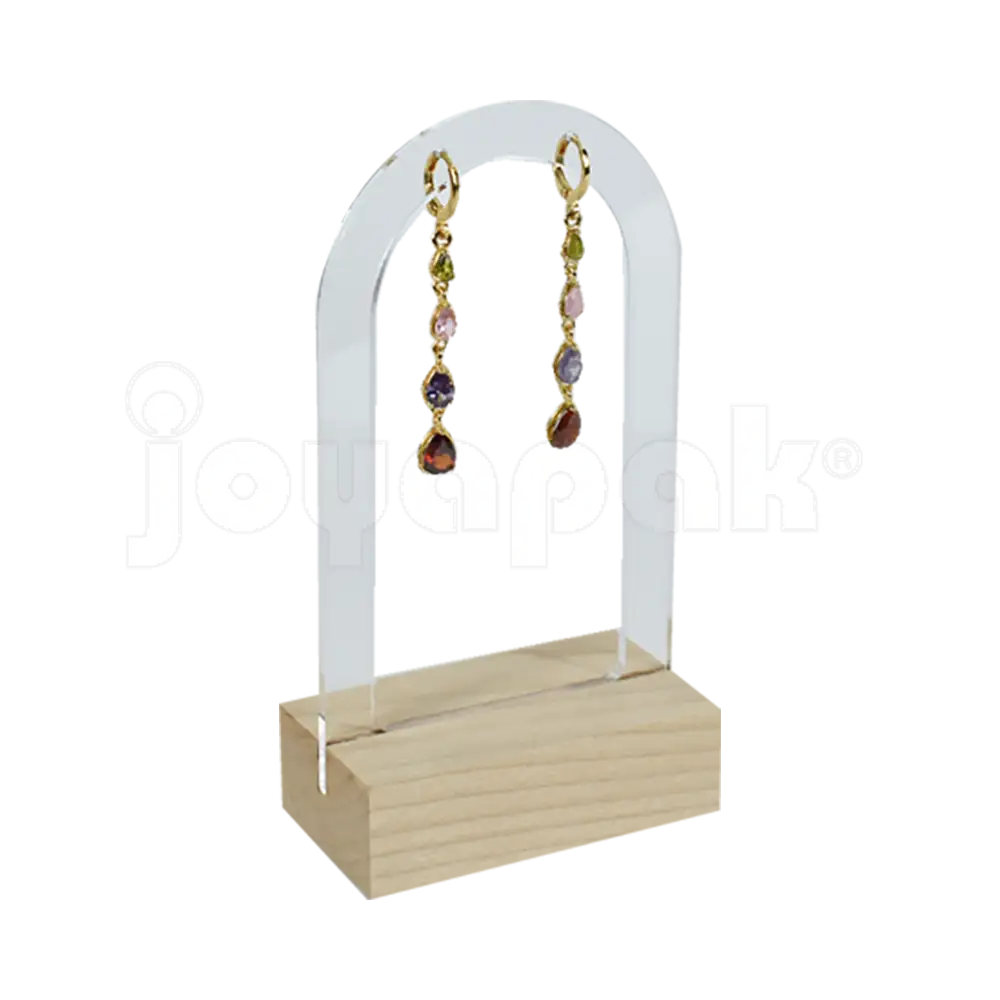 Exhibidor de Acrílico Transparente con Madera para Arete