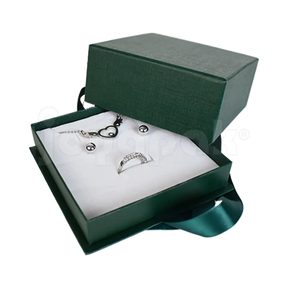 Presenta tus coordinados de joyería con la máxima elegancia usando nuestra caja de cartón para juego modelo Esmeralda. Su sofisticado acabado en color esmeralda y un interior de terciopelo negro no solo protegen cada pieza, sino que realzan su valor al instante. En Joyapak, impulsamos tu marca, por eso te ofrecemos la impresión de tu logotipo ¡sin costo alguno!*