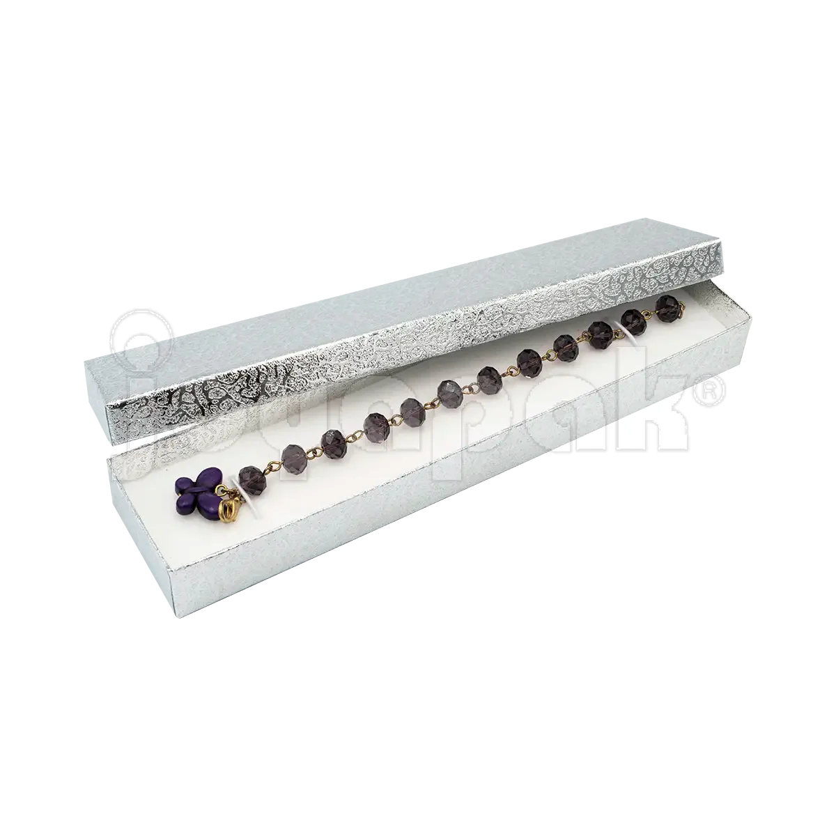 Con un sofisticado acabado metalizado en dorado o plateado, este estuche para pulseras no solo protege esclavas y brazaletes, sino que también realza su belleza. Es el empaque para joyería ideal para exhibición en tienda, venta online o para convertir una compra en un regalo inolvidable.